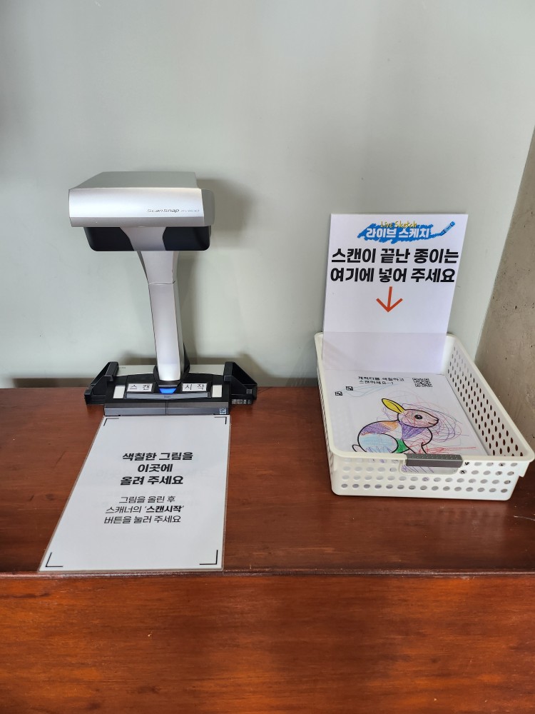 그리고 옆에 그림 그려서 스캔하면 화면에 띄울 수 있는 라이브 스케치 코너도 있어서, 테마파크 들어오자마자 여기서 한참 놀았어요. 그림 그리기 좋아하는 아이들은 여기 너무 좋아할 거예요!