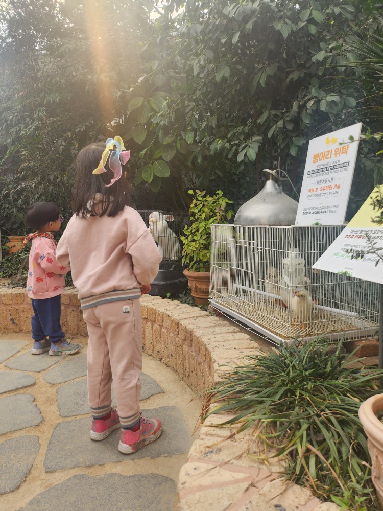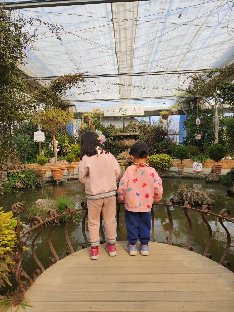 그리고 온실이 참 예쁘게 꾸며져 있어서 저는 애들 세워놓고 사진 찍기 바빴구요! 물고기, 새, 토끼 등 여러 동물들이 있어서 아이들은 구경하러 뛰어다니기 바빴어요.🤣