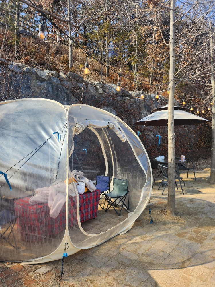 캠핑존, 텐트 자리도 있어서 잠시 쉬어갈 수 있고, 짚라인이랑 미끄럼틀 같은 간단한 놀이공간도 있어요. 별거 없어 보이는데 애들은 너무 좋아하더라구요!