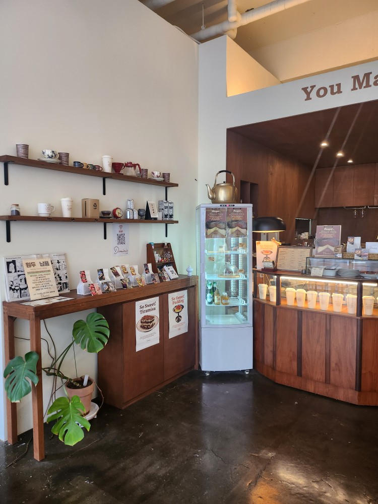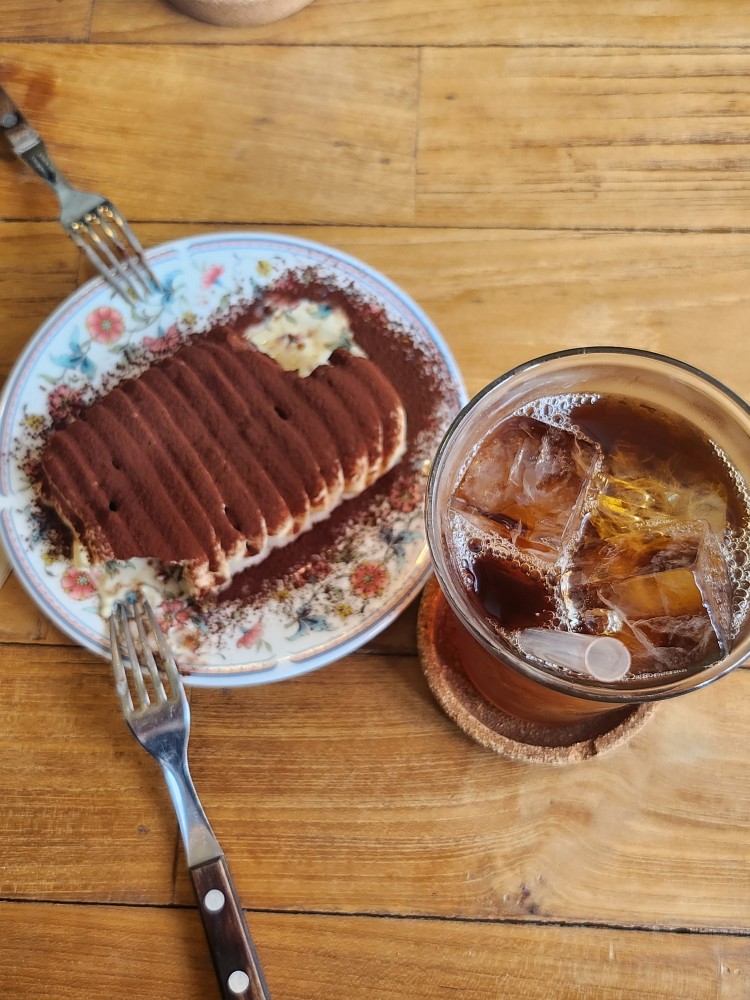 다만 제 기준으로는 커피가 조금 진한 느낌이었답니다. 향을 강하게 뽑아내시는 느낌이랄까용.. 저는 살짝 은근~한? 향의 커피가 더 마시기 편한...커피 초보(?)이니 참고해서 후기를 봐주세요! 😆 티라미수도 같이 먹었는데, 마스카포네 치즈 부분이 조금 더 많았으면 좋겠더라구요. 빵이 좀 많고 커피 뿌린 부분이 약간 쓰게 느껴졌답니다. 좀 더 달콤했으면 더 맛있었을 것 같아요!!
