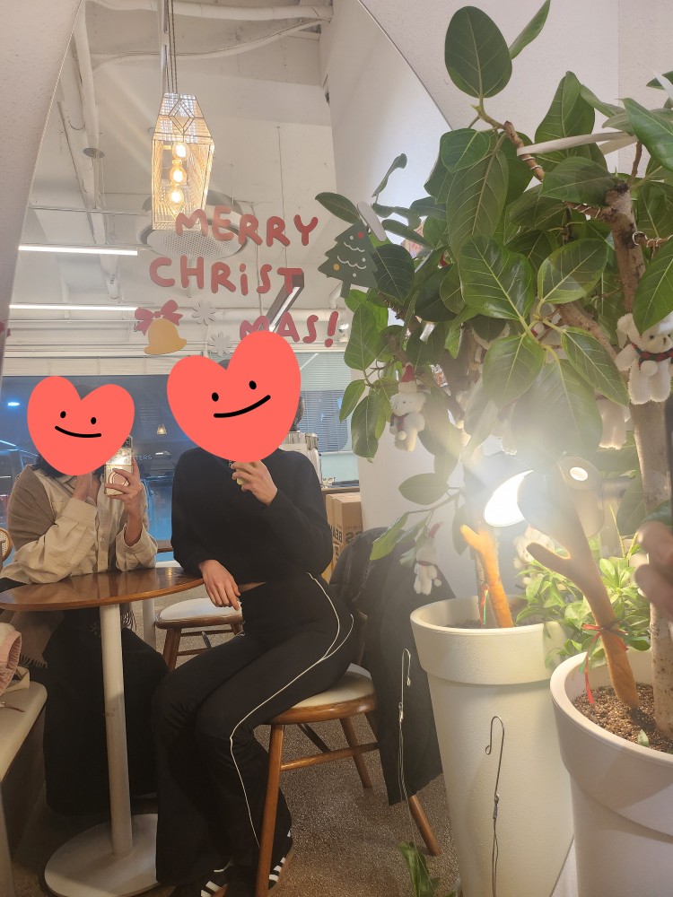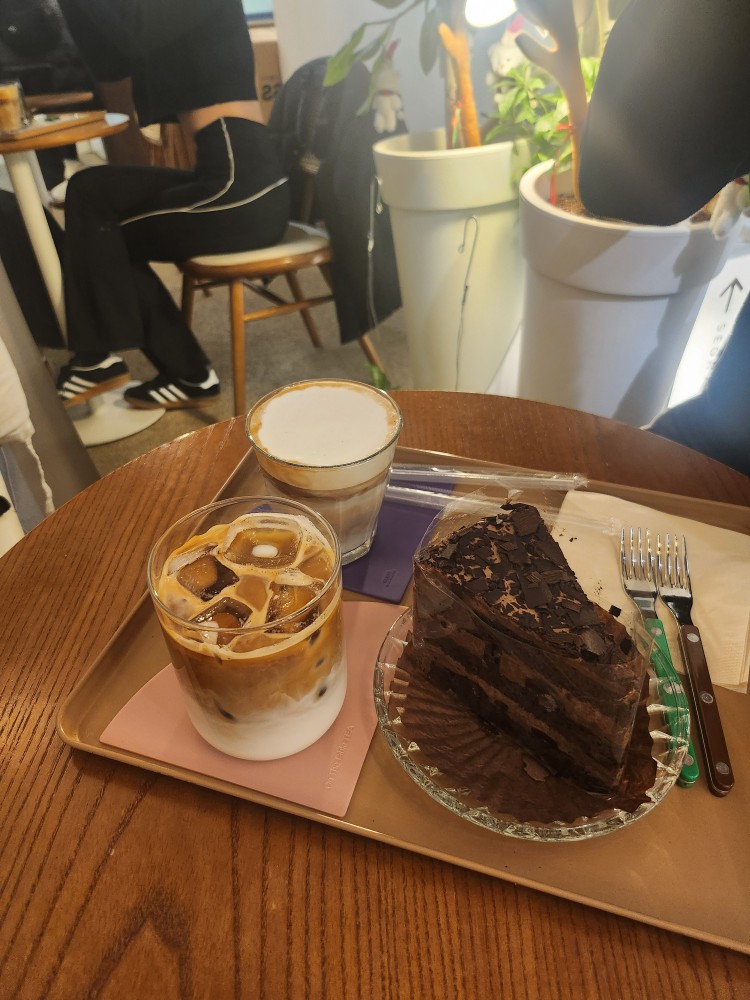 초밥 먹고 근처 카페에서 커피 한잔 했답니당~ 오랜만에 카페에서 제대로(?) 즐겼어요. 소금라떼, 그냥 라떼, 블랙 포레스트 케이크 먹고! 마무리로 아이스아메리카노 한 잔 더 시켜서 나눠먹었어요! 둘이 거하게도 먹었네요 🤣
