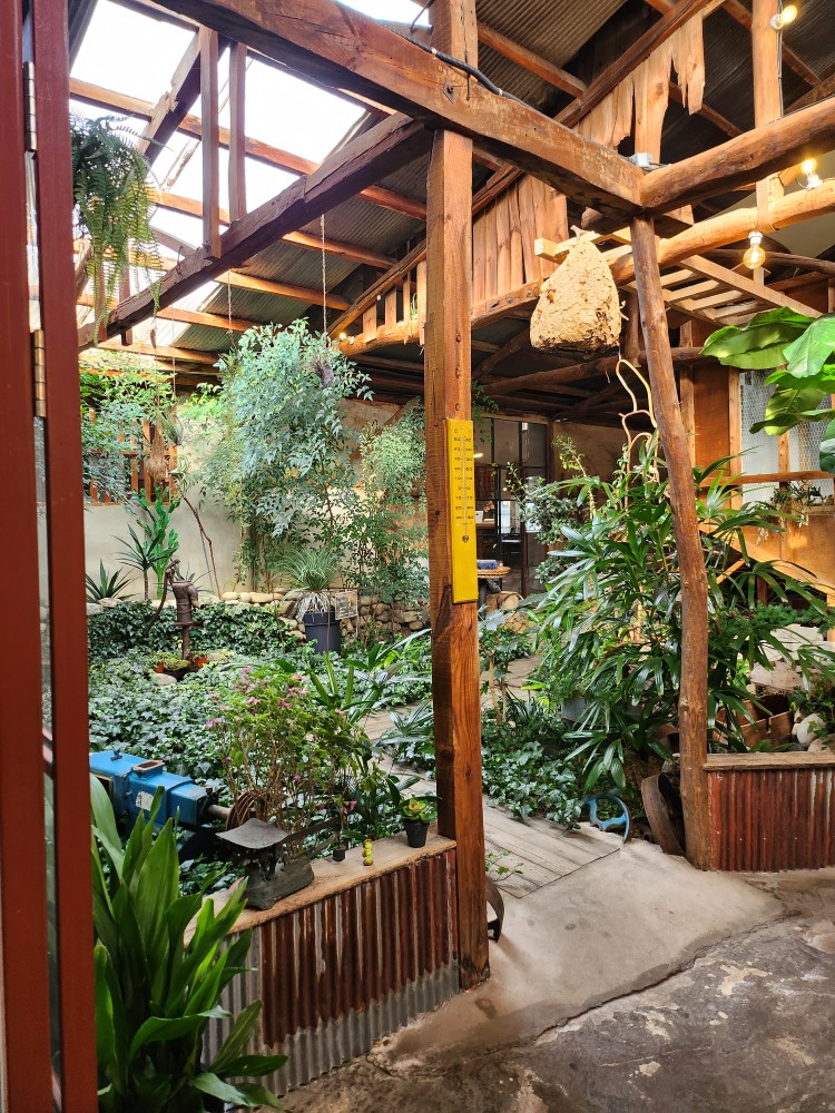 카페 내부가 생각보다 더 넓고 멋지게 꾸며져있어요! 내부는 목재 구조에 정원도 예쁘게 꾸며져있고, 나무 탁자에 식물이 자라고 있는것도 너무 귀여웠어요.