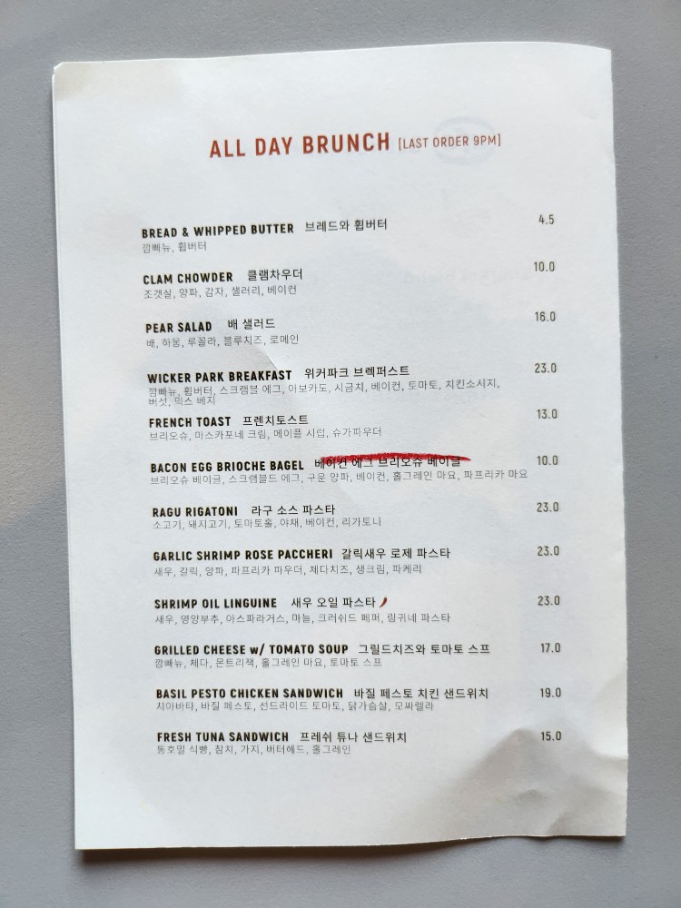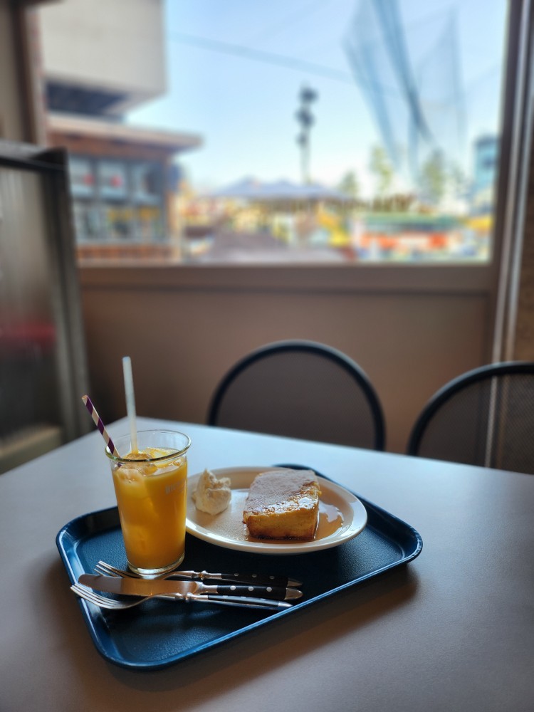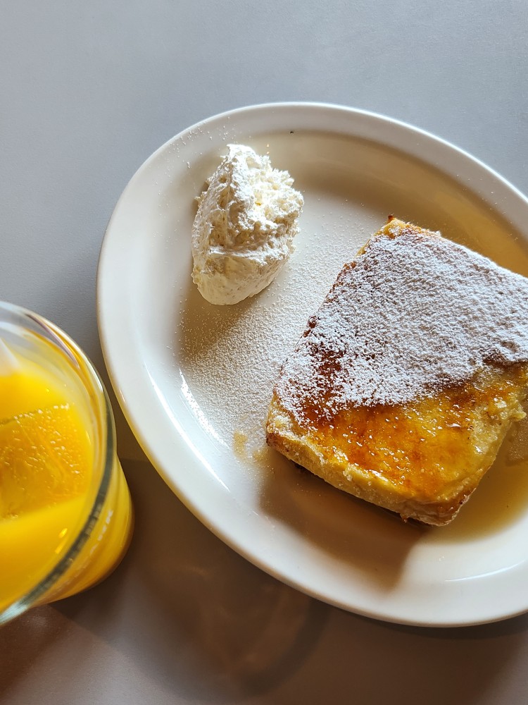 저희는 프렌치토스트와 오렌지주스를 시켰어요! 프렌치토스트는 토스트 겉면에 설탕 코팅이 되어있는 스타일이었는데요! 달고나를 프렌치토스트와 함께 먹는 느낌이었어요. 처음 먹어보는 스타일이라 신기했어요 ㅋㅋ 근데 코팅이 두껍고 빠쟉한 느낌이라 부드러운 프렌치 토스트와는 어울리는 느낌은 아니었답니다. 전에 찌아와 방문했을때는 토마토 수프와 그릴드 치즈 샌드위치를 먹었었는데, 제 입맛엔 그게 더 맛있었어요!