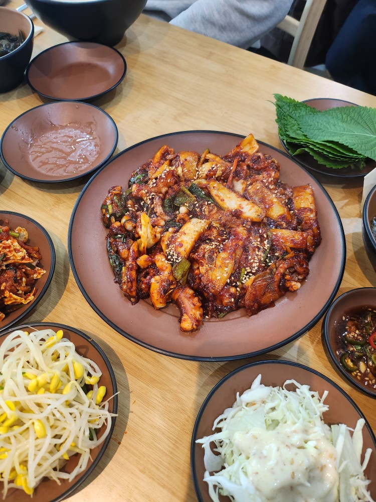 저희는 테이블마다 세트를 주문했는데, 낙지볶음과 밥, 반찬들, 해물파전, 수육까지 든든하게 나와서 너무 좋았어요!