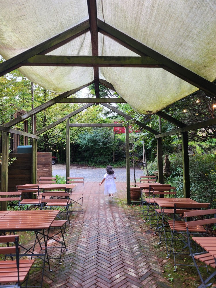 입구쪽 외부에도 자리가 많이 있어요! 뒤쪽 정원으로 가는 길에도 자리가 있고, 카페 내부 입구쪽에도 자리가 마련되어 있습니다.