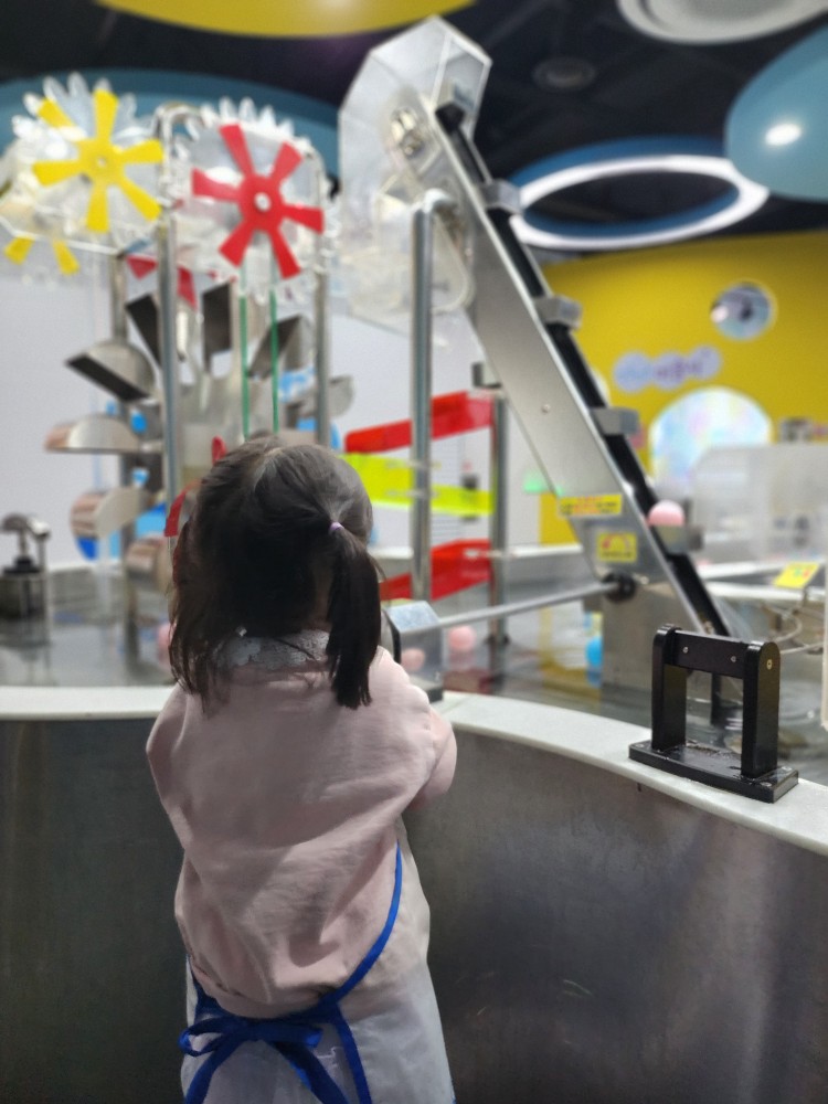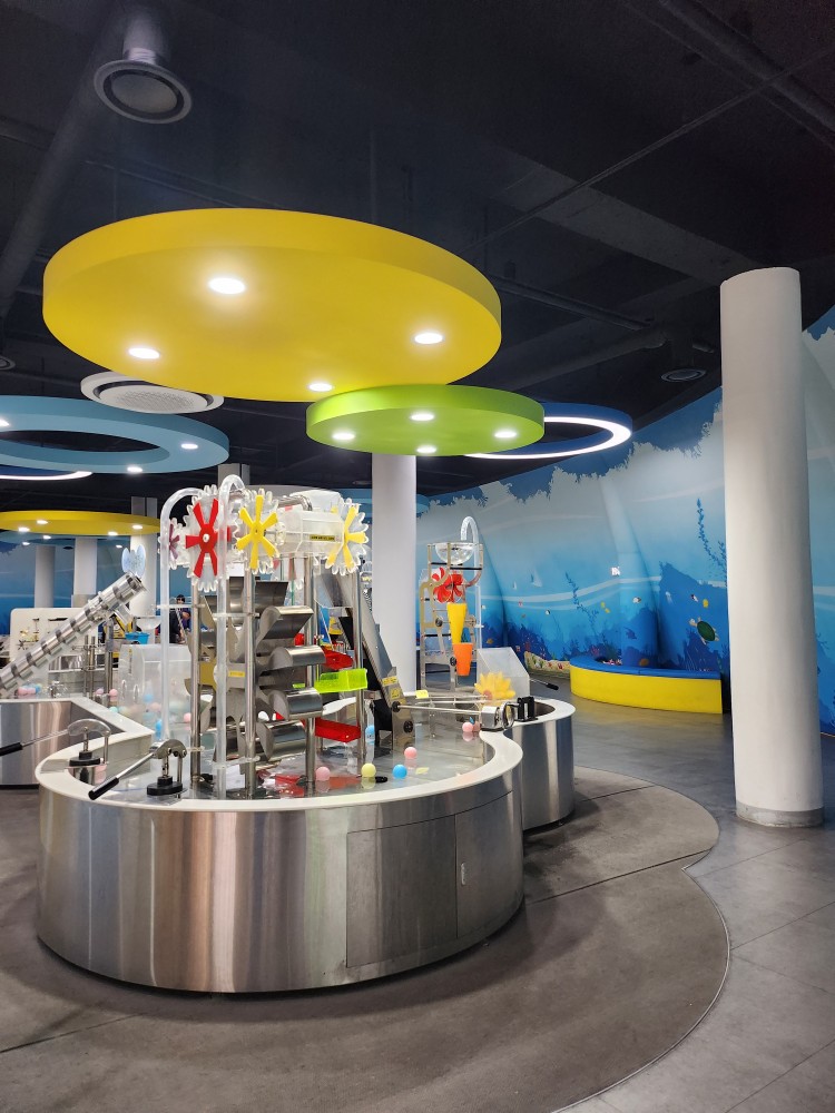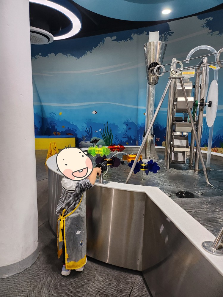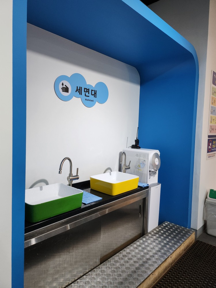 그리고 비눗방울을 할 수 있는 공간도 있습니다! 신나게 놀고 다시 물 놀이를 하고 싶다면, 세면대에서 손을 씻고 다시 물 놀이 공간에서 놀면 됩니다!