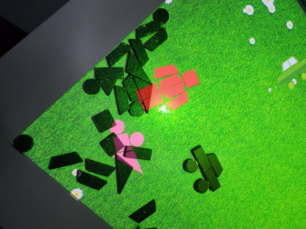 프로젝터가 쏴주는 모양대로 블럭을 만들거나,