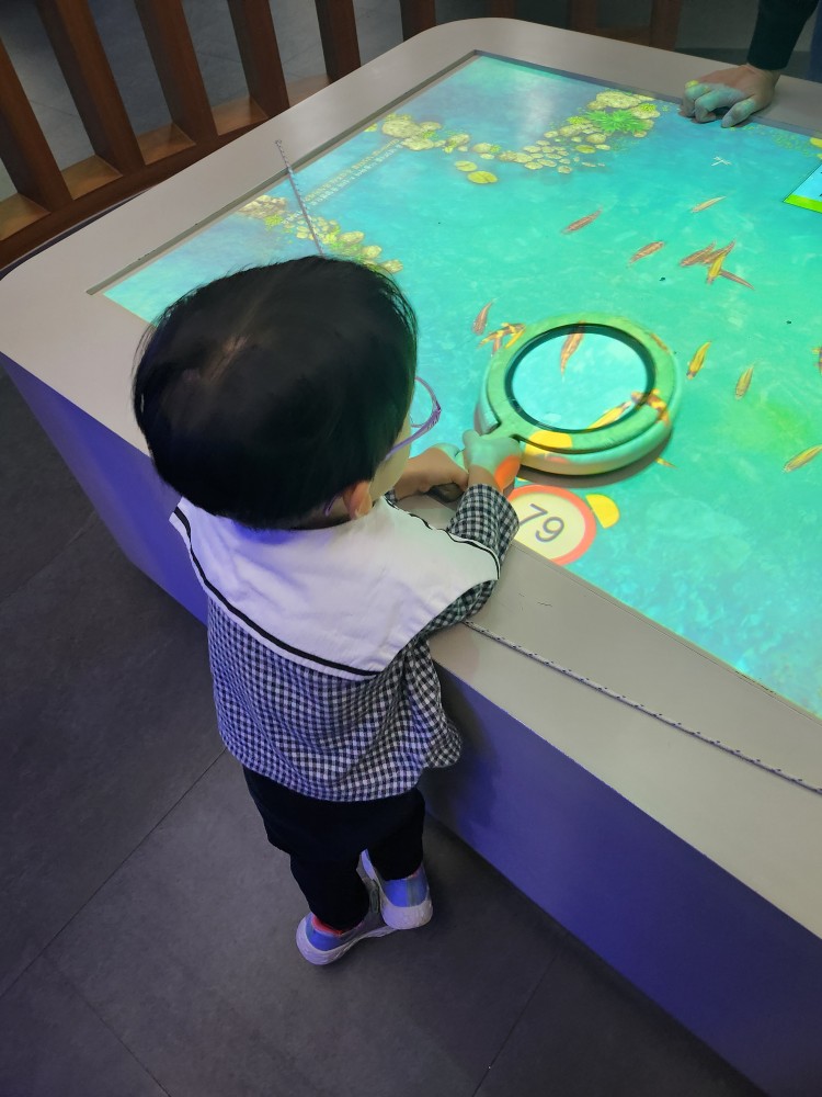 환상의 빛 공간은 엄마아빠가 가장 편한 곳인데요. 위험한 것도 없고, 얌전히 앉아서 색칠을 하거나 칠교블럭을 맞추고, 낚시 게임을 하는 등 비교적 정적인 놀이들로 구성되어있어서 한숨 돌릴 수 있는 공간이었어요. 😌
