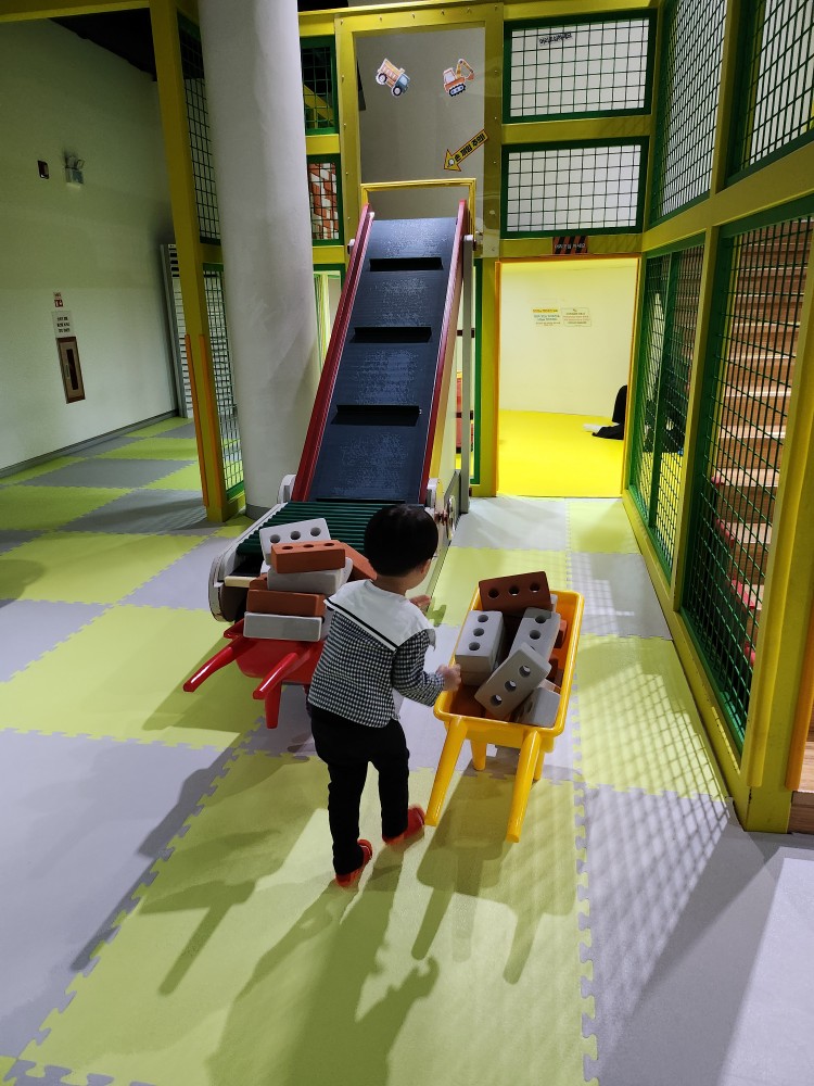 그리고 도르레?를 돌려서 블럭을 위로 올리며 공사놀이를 하거나 할 수 있었는데, 손이 기구에 끼일까봐 계속 아이들을 주시하고 있어야 해서 약간 피곤했답니다. 애들은 너무 좋아했어요!