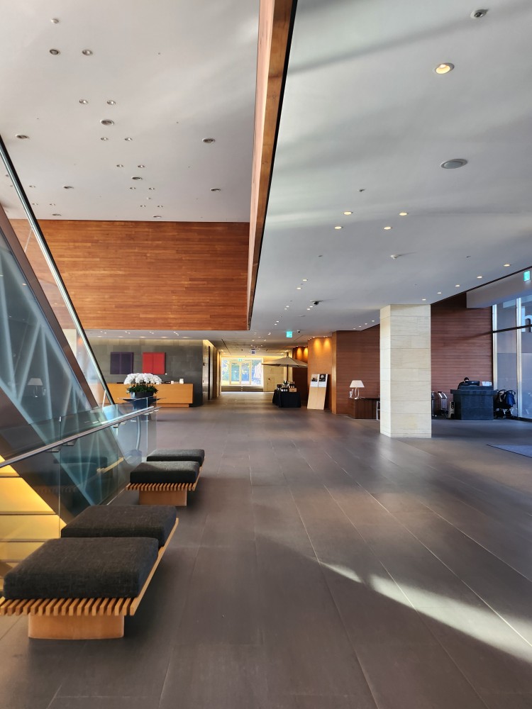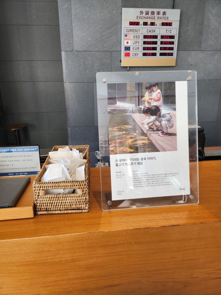 로비 깔끔합니다! 체크인 카운터 옆에 물고기 먹이주기 할수 있는 오픈된 공간도 있어요!