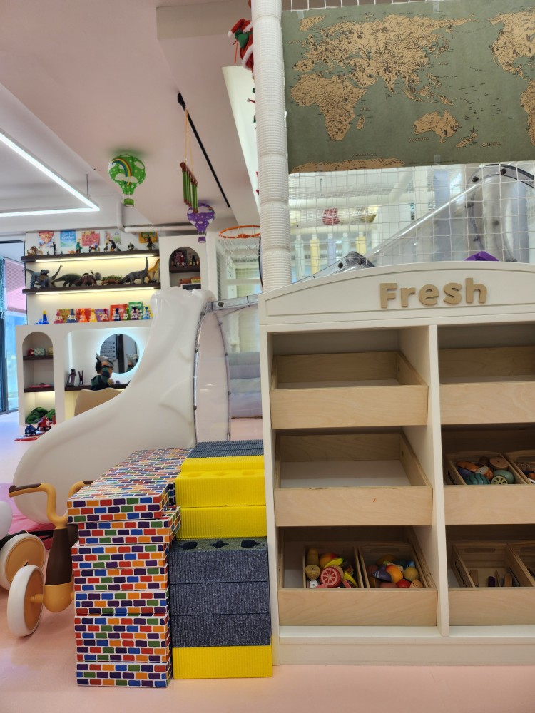 이런 공간 하나도 허투로 쓰지 않았네요.. 여기는 자동차 장난감과 책들이 있었어요! 5살 친구들은 여기사 자동차 가지고 놀고 나중에는 도로 블럭으로 길을 만들어가며 놀더라구요! 그리고 아이스크림 가게 놀이도 너무 재밌게 하더라구요. 덕분에 엄마는 잡혀서 아이스크림 5개 사먹었음...ㅋㅋㅋ