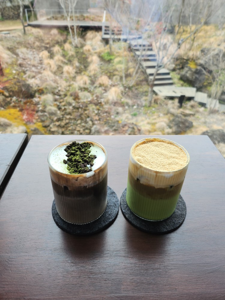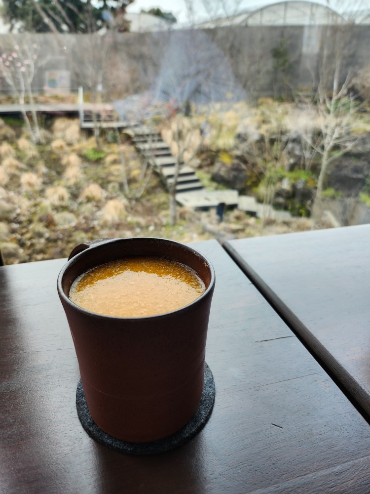 음료를 마실 수 있는 공간은 건물들이 다 통창이라 분위기가 정말 좋았어요. 바깥 정원이 한눈에 보여서 그냥 앉아만 있어도 힐링되는 느낌이었답니다 ㅠㅠ 여기는 굳이 음료를 시키진 않아도 되는데요. 쭈니가 오렌지주스를 마시고 싶다고 해서 감귤주스를 시켰는데... 너무 그냥 감귤을 통으로 짠(?) 맛이었어요. 어린이들은 먹기 힘들어할 것 같아요. 쭈니는 시켜놓고 하나도 안먹었어요 ^ ^ 그냥 빵 먹을걸!!!! 🤣