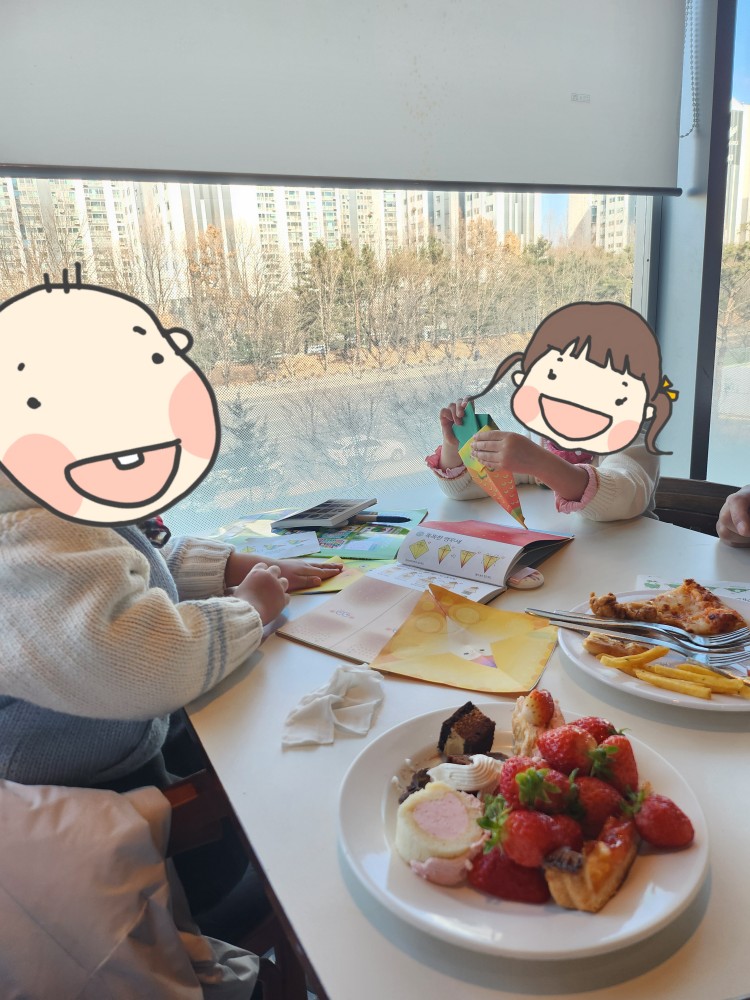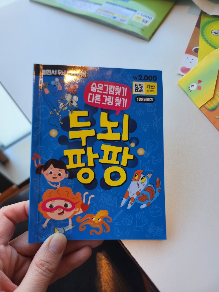 작은 크기의 미니북인데요! 앞에는 숨은그림찾기, 뒤에는 틀린그림찾기로 이루어져 있어요. 식당에 도착하자마자 이걸 하기 시작해서 엄마아빠가 밥 퍼 올 때까지 무슨 독서실에서 공부하듯이 얌전히 앉아 있더라구요 ㅋㅋ 너무 재미있대요! 개인적으로 이게 진짜 좋았던 게, 아이가 스스로 집중해서 놀이를 하니까 영상을 보여주지 않아도 되어서 마음이 정말 편했어요!