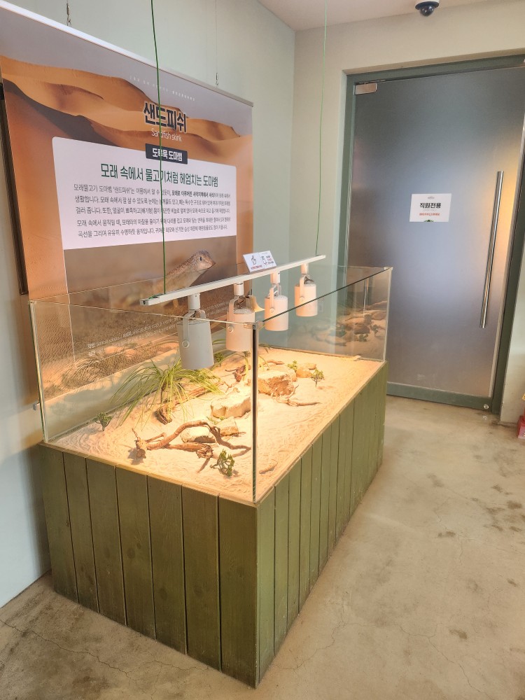 그리고 곤충 체험장에서는 도마뱀이나 곤충들을 살살 만져볼 수도 있었는데요. 세면대도 있어서 체험 전후로 손 씻기 좋았습니다.