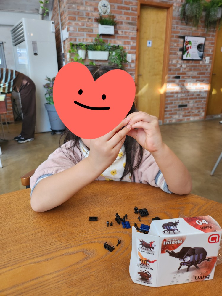 메뚜기 잡기에서 곤충블럭을 받으셨거나, 곤충 퍼즐을 구입하신 분들은 여기 카페에서 만드시면 좋아요! 저희는 아빠가 조립 담당이어서 아빠가 애기들 조립하는 거 봐주고, 저는 그 옆에서 쉬었습니다 ㅋㅋ