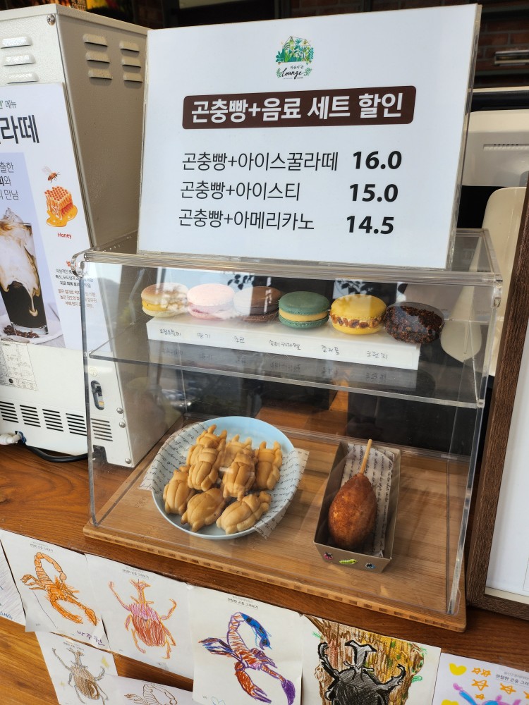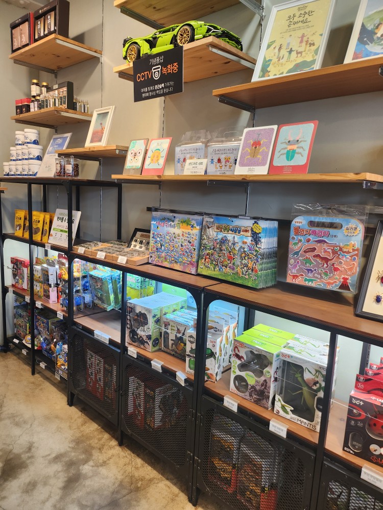 라운지 곤 1층에는 기념품샵도 같이 있어서 곤충 관련 장난감 구경도 할 수 있고, 식용 곤충도 있어서 아이들이 신기해하며 구경하더라구요.