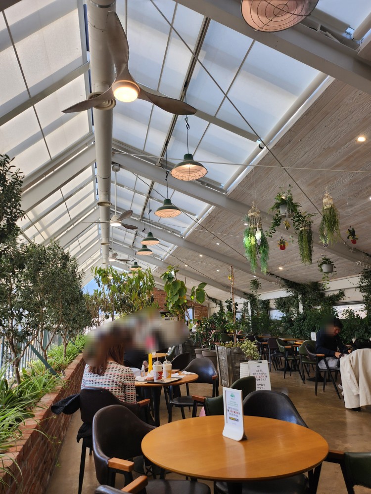 창문이 많고, 천고가 높아서 개방감이 있는 분위기입니다. 안에 식물들도 많아서 카페가 참 예뻐요!