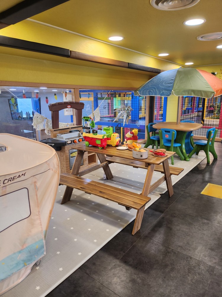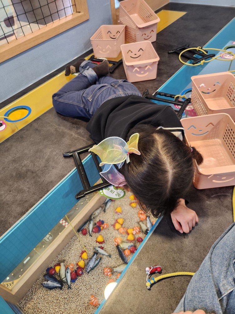 계단으로 올라가면 낚시놀이가 있는데, 이게 뭐라고 애들은 참 좋아하죠 ㅋㅋ 잡은 고기를 옆에 소꿉놀이존에서 요리도 하고, 역할놀이가 계속 이어지더라구요.