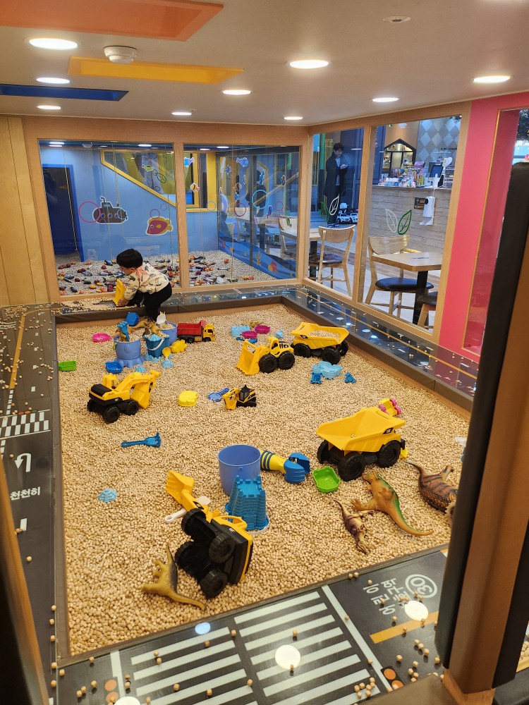 정확히 아기들 코너인지는 모르겠지만, 간단한 장난감들이 있는 공간이 있었어요! 어린 친구들이 앉아서 가지고 놀만한 장난감들이 있는 곳이었는데 쭈니도 여기서 혼자 시간을 좀 보냈답니다.