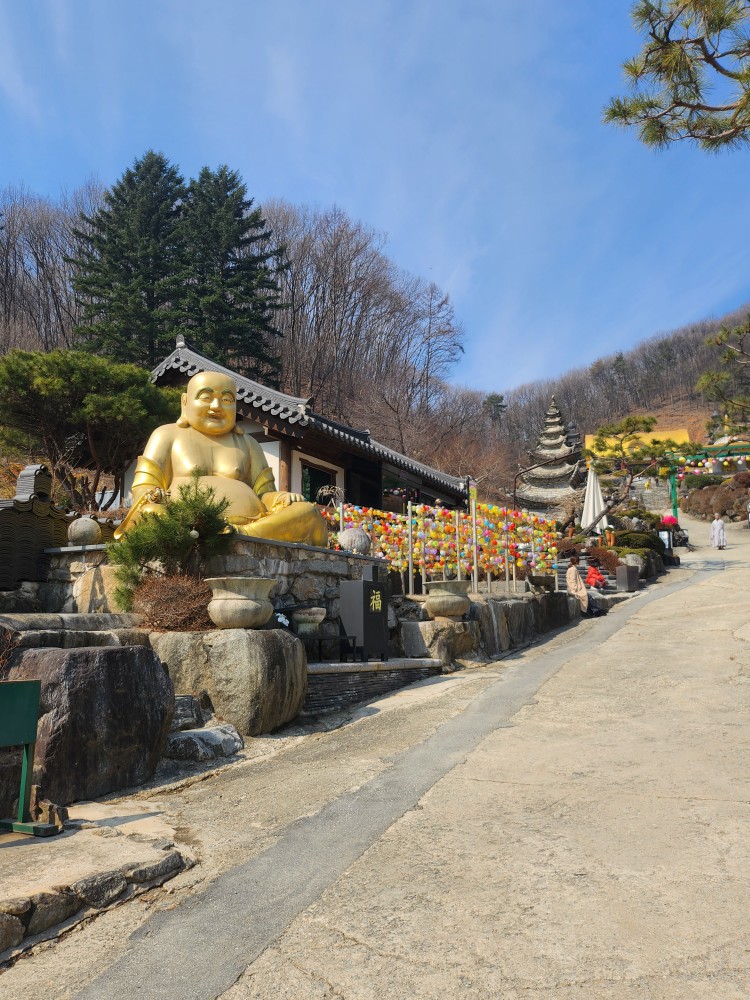 3월 21일 토요일에는 용인 와우정사에 다녀왔어요. 근처에 농촌테마파크, 용담저수지 같은 관광지들이 있어서 스쳐 지나간 적은 있었는데, 실제로 들어가 본 건 이번이 처음이었답니다. 막 엄청난 구경거리가 있는 곳은 아니지만, 아이랑 가볍게 산책하면서 둘러보기에는 꽤 괜찮았어용! 🌿