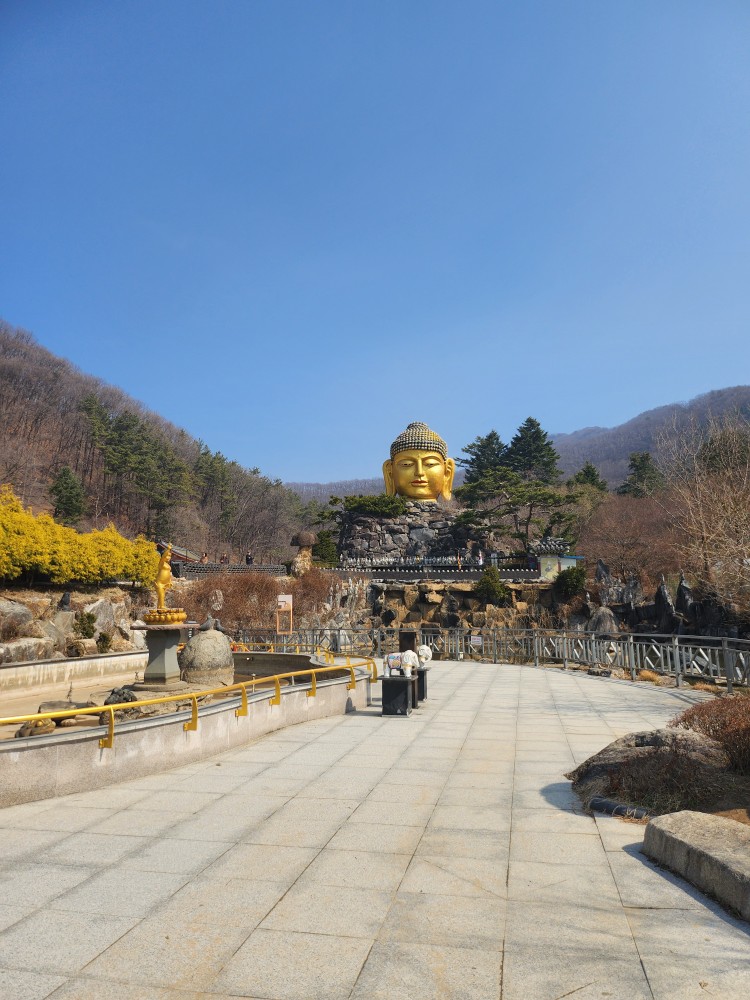 와우정사는 용인 해곡동 연화산 자락에 있는 사찰이에요. 불교 신자가 아니어도 한 번쯤 가볍게 둘러보기 좋은 곳으로 알려져 있답니다. 절 안에 불상이 많고, 특히 입구의 큰 불두와 산중턱의 와불이 유명해요! 경내에는 세계 각국의 불상도 전시되어 있어서, 천천히 둘러보면 생각보다 볼거리가 꽤 있답니다. 무엇보다 산책하듯 걷기 좋은 코스라서 날씨 좋은 날 가볍게 다녀오기 좋았어요 ☀️