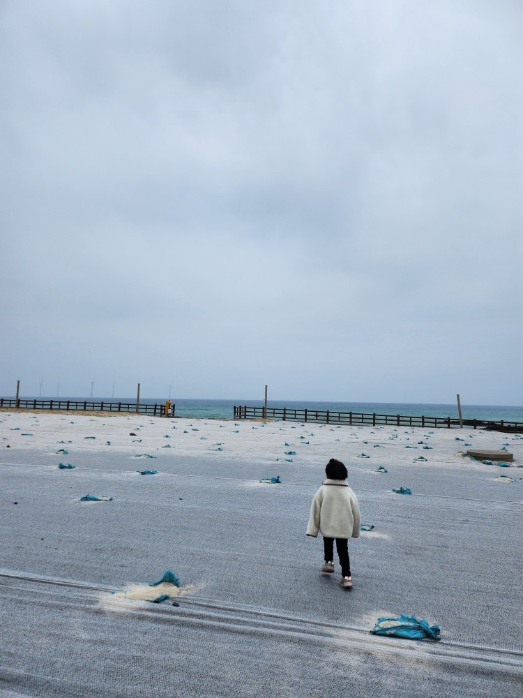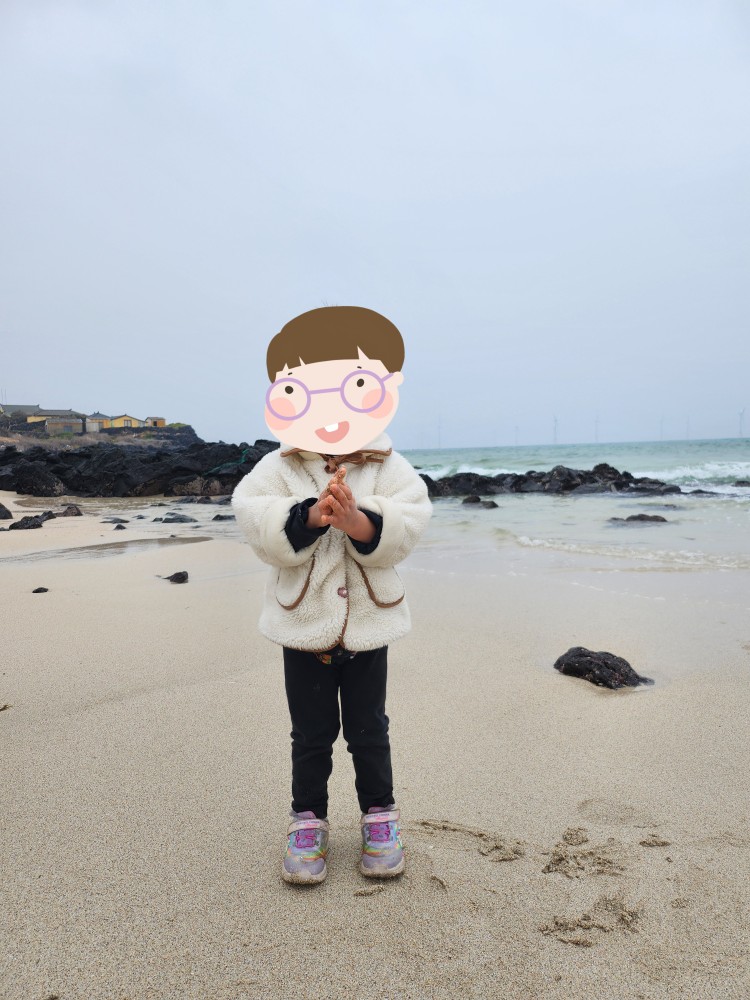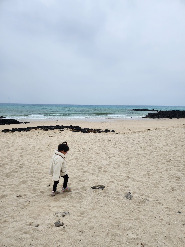 점심을 먹고 나왔는데 쭈니가 바다에 가고 싶다며 울어버렸어요!!!!!!! 점심으로 다녀왔던 돈해상이 바다뷰가 굉장히 좋았는데, 그 바다뷰를 보고 쭈니가 바다에 가고 싶어졌던 것이었죠...🤣 그래서 급하게 근처에서 찾아보다가 곽지해수욕장을 발견하고 그쪽으로 차를 몰았답니다. 유료 주차장도 있어서 편하게 갈 수 있었어요!