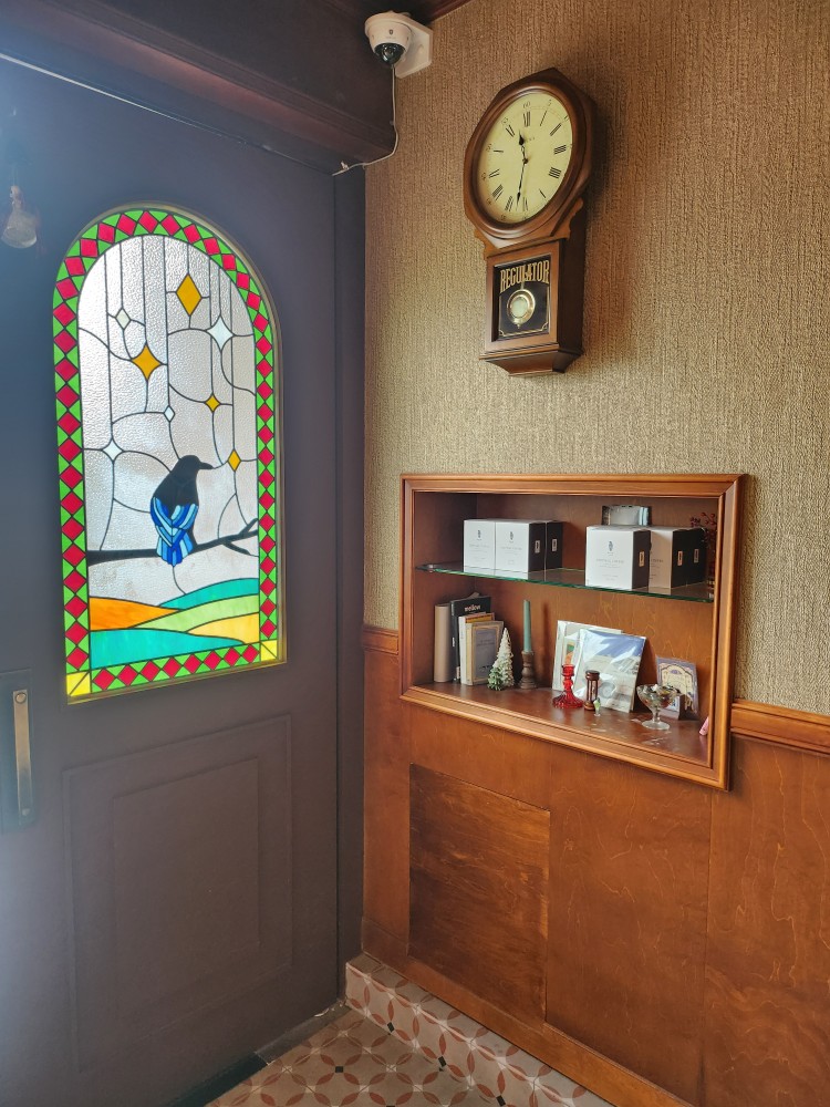 입구 바로 옆에는 너무 아름다운 스테인드글라스가 있고, 방마다 창이 있어서 참 좋은데요! 역시 메인은 귤나무가 보이는 넓은 창이 있는 자리!!!