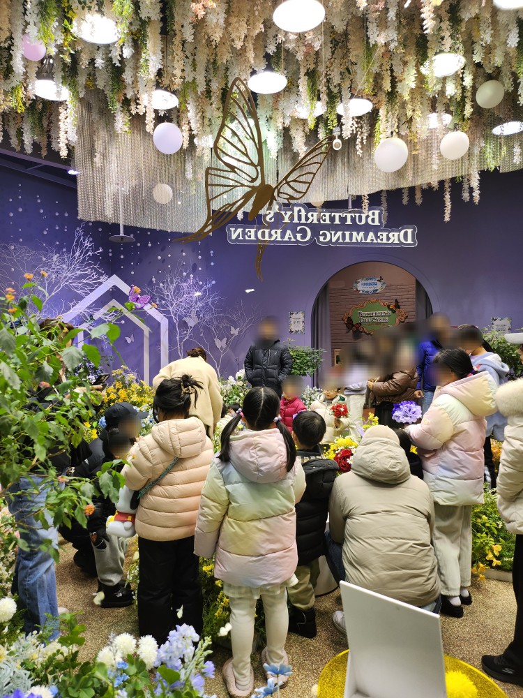 이렇게 포토존도 있어서 사진도 찍기 좋아요! 그리고 정원 중앙에 나비들이 많기 때문에 안쪽에는 사람이 많이 몰려 조금 혼잡하답니다. 준비된 부케에는 꿀물이 뿌려져있어서 정원으로 들어가면 나비가 다가와요. (잘 안되면 직원분께 꿀물 리필받으세요 ㅋㅋ)