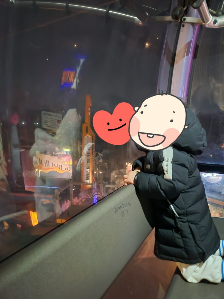 처음 타보신 분들은 꼭 참고하세요! 유모차가 두 개면 하나는 접어야 한다고 합니다! 저희는 작은 유모차라 괜찮을 줄 알았는데 접어야 한다고 해서 저는 당황했지만, 남편은 당황하지 않고 빠르게 유모차 접어줬어요ㅋㅋ 유모차 2대 가져가시는 분들은 마음의 준비(?) 하셨다가 쓱싹 접어주세요! 오르막을 유모차 끌고 가지 않아도 되게 해주는 고마운 시설입니다! 좀 기다리더라도 타고 가는걸 추천드려용..!