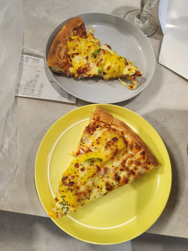 - 고구마무스피자: 아이들이 진짜 잘 먹었어요. 고구마무스가 달달해서 더 좋아했던 것 같아요. 그리고 아이들 피자에는 치즈크러스트를 추가했는데, 어떤 친구는 크러스트 부분 위주로 먹더라구요.😅