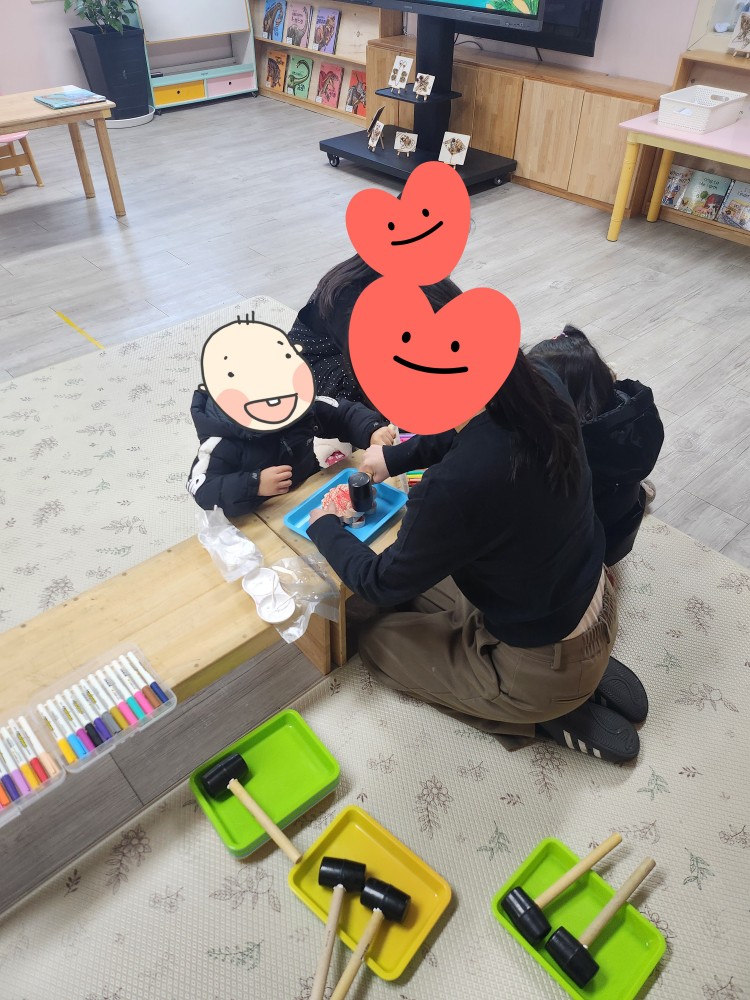 아이는 선생님들이 준비해주신 놀잇감으로 만들기 놀이를 하고 있고, 보호자는 옆에서 서류를 작성하면 됩니다! 아이가 놀고 있으니 보호자는 비교적 편하게 작성할 수 있어서 좋았어요!