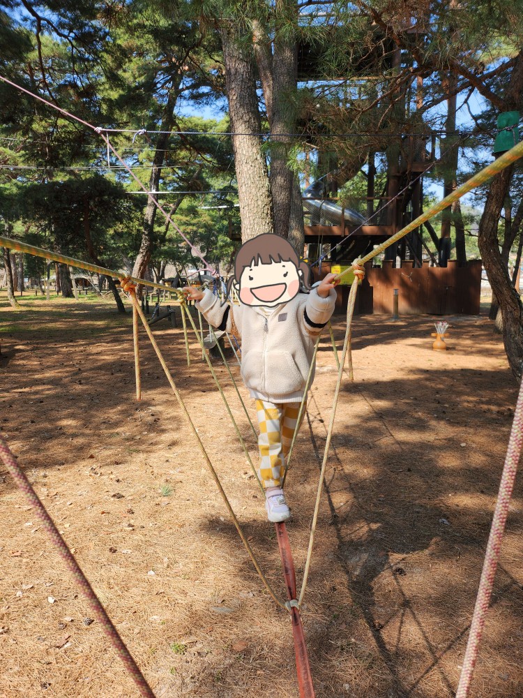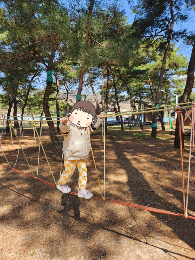 사진은 없지만 집라인도 있어서 탈 수 있었고, 줄로 된 다리도 건너보고, 그네도 타볼 수 있었습니다. 아이들은 정말 신나게 놀았고, 부모 입장에서는 자연 속에서 아이들이 안전하게 놀 수 있어서 만족스러웠어요. 😊 저희가 방문했을 때는 토요일 오전이었는데 사람이 아무도 없어서 저희가 빌린 것처럼 자유롭게 놀 수 있어서 더 좋았답니다!