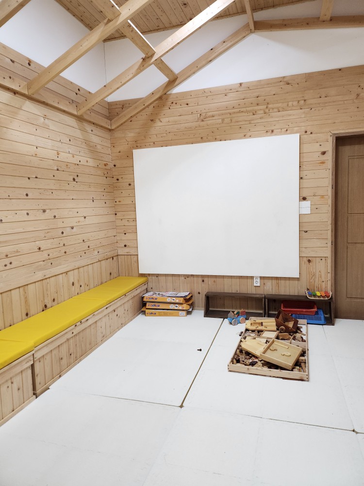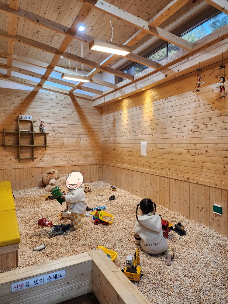 그리고 나무놀이체험장이 있는데, 편백나무 조각이 가득 채워진 방에서 장난감을 가지고 나무를 느끼며 놀 수 있도록 준비되어 있었습니다. 키즈카페 같다고 아이들이 많이 좋아했던 공간입니다!