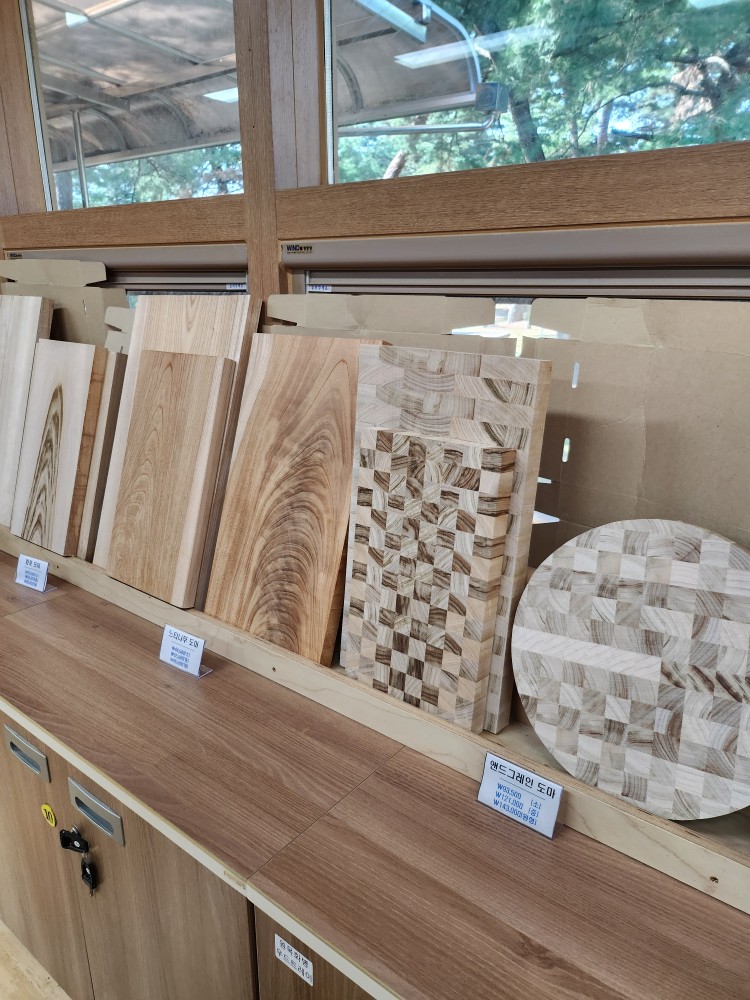 작업대도 넉넉히 준비되어있고, 만들 수 있는 체험 키트도 다양하게 준비되어 있었습니다.찌아 쭈니처럼 어린아이들은 색칠하는 정도의 체험도 가능하다고 하네요! 저희는 숲 놀이터와 실내 공간에서 시간을 많이 보내서 목공 체험을 해보지는 않고 둘러보기만 했는데요! 체험 키트마다 가격이 다르고, 만들어서 가져가는 것과 그냥 사서 가는 것이 가격이 같다고 설명을 들었습니다!