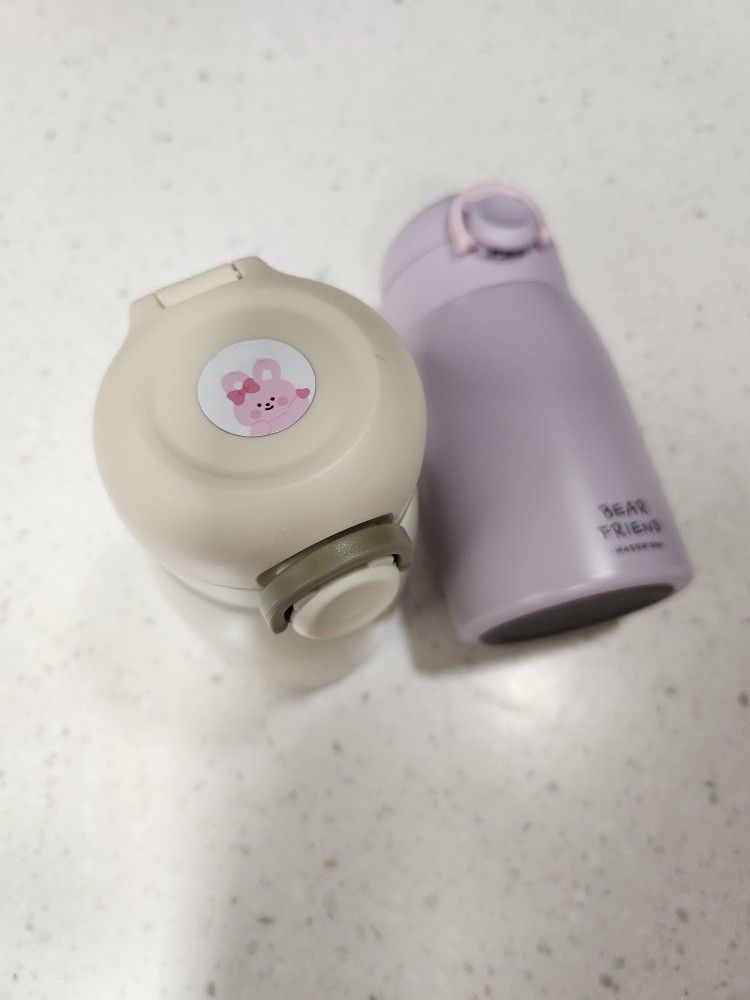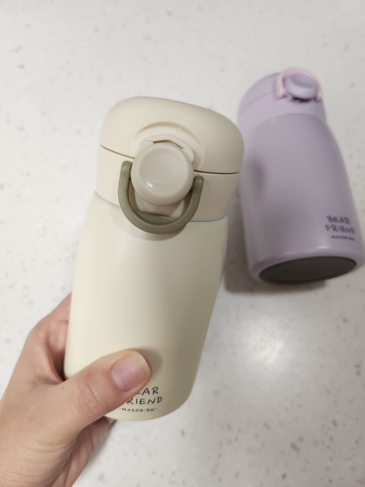 - 특징: 곰돌이 버튼 원터치, 스트랩 포함, 식세기 OK (뚜껑 제외 본체 조심히 넣기. 식세기 사용은 가능하나 기스날 수도 있음!)