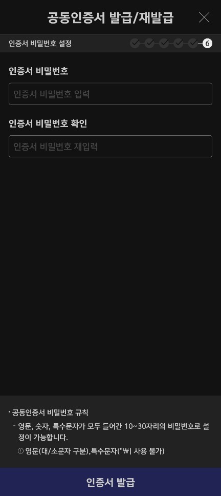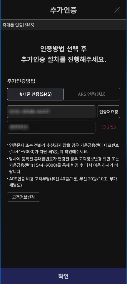 법정 대리인 인증을 진행 후, 코스콤 인증서(무료)를 선택해주었습니다.