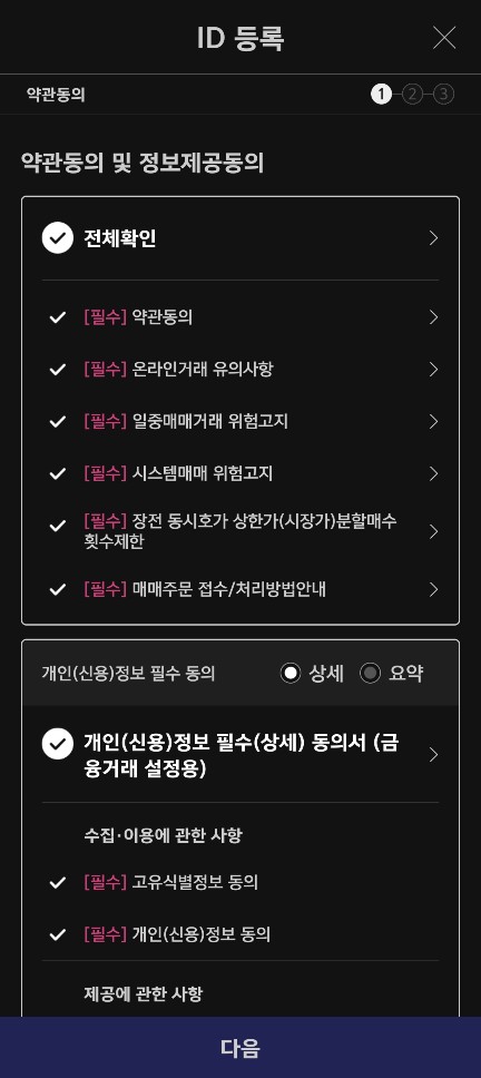 - ID 등록시에는 영웅문 앱에서 직접 진행하기! (카톡 링크에 접속해서 하면 진행이 안됨!!)