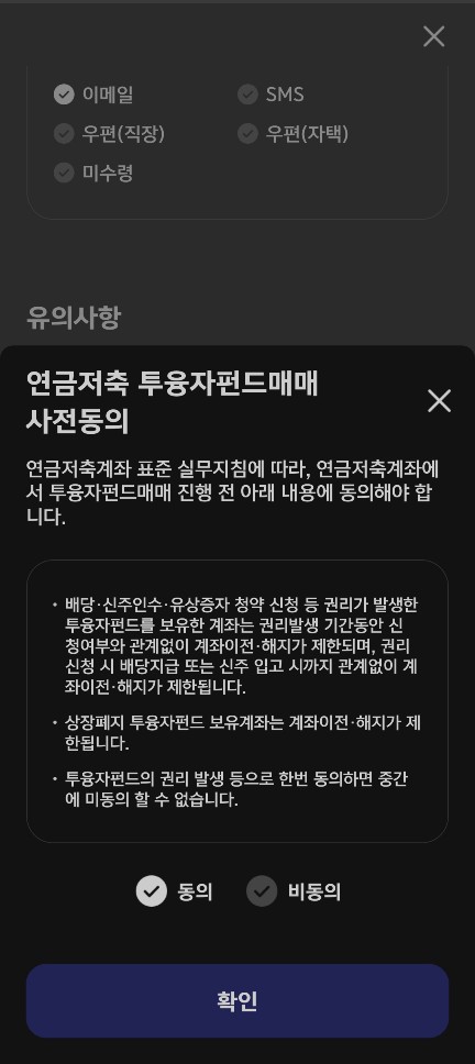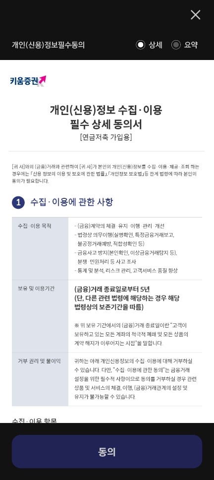 또 동의, 동의 하고 나면 연금저축계좌 등록 완료!