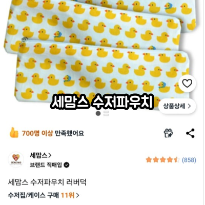 현재 별점 4.5점, 리뷰 858개를 가진 세맘스 수저파우치 러버덕, 혼합 색상, 4개! 지금 쿠팡에서 더 저렴하고 다양한 수저집/케이스 제품들을 확인해보세요.