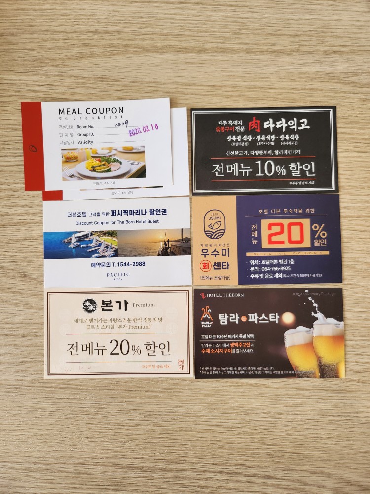 체크인했더니 쿠폰을 진짜 이만큼 줬어요;; 다 쓰진 못했지만, 실제로 사용해본 건 이 정도!