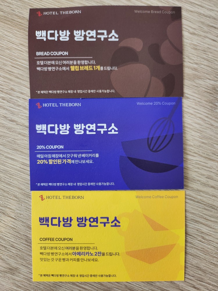 - 빽다방 - 아메리카노 2잔 - 크림빵 쿠폰 → 컵 테이크아웃 시에는 보증금이 따로 발생합니다. 그래도 호텔 건물이랑 연결되어 있어서 후다닥 다녀오기 편했어요.