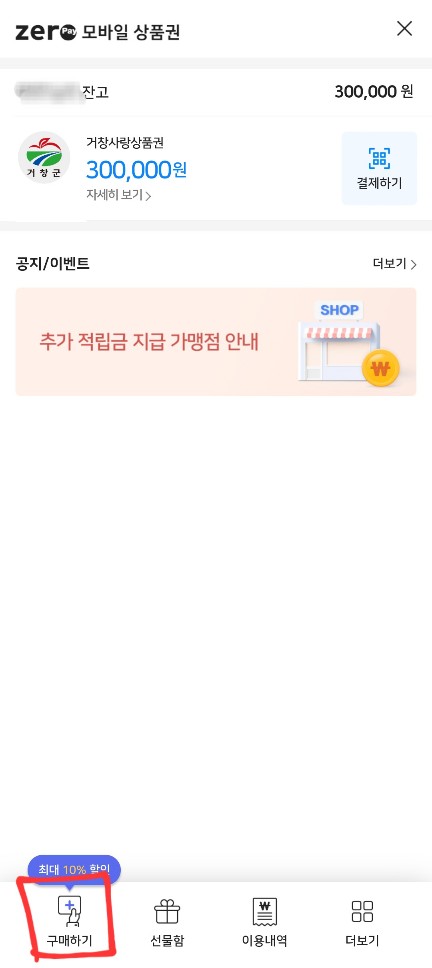 앱 하단의 상품권 [구매하기] 버튼을 클릭한 후, 반값여행 정책 발행용 상품권 구매를 클릭해줍니다.