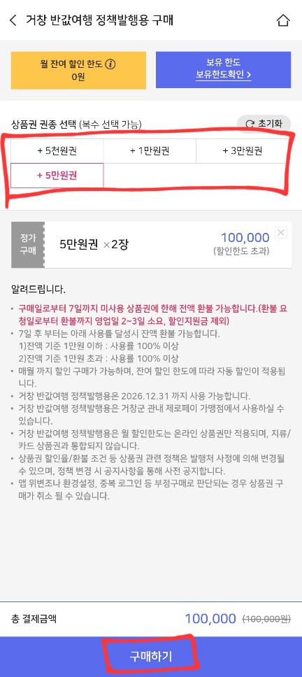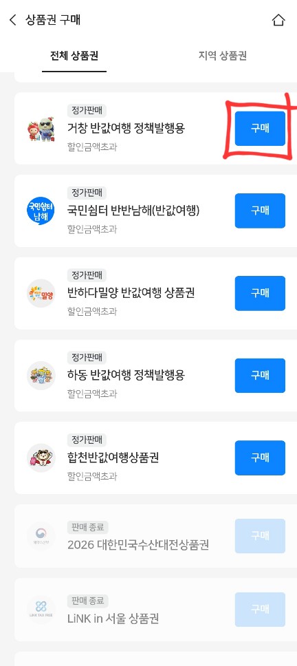 반값 여행 정책 발행용 상품권 구매 방법