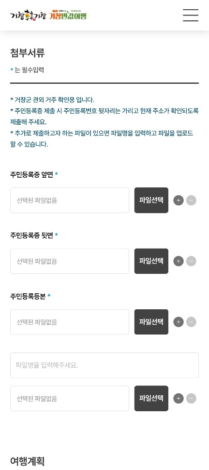 주민등록증 앞, 뒷면, 주민등록등본을 첨부하고, 여행 계획을 작성합니다. 여행 계획은 선택사항이라 안적어도 되나봐요!